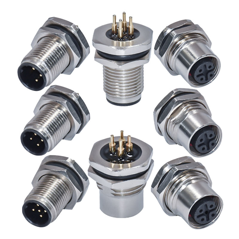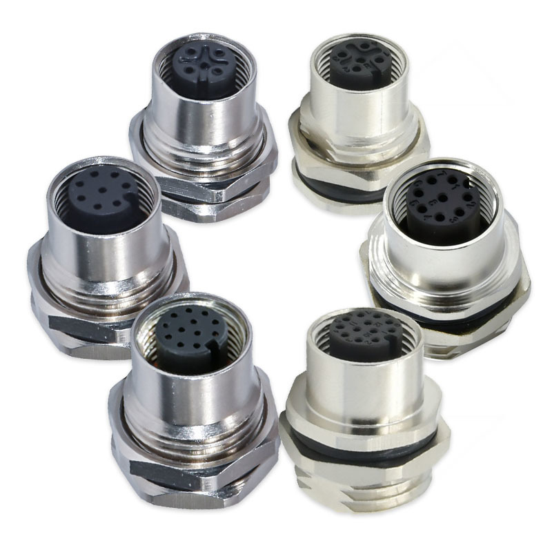 Высококачественный разъем M12 с конфигурацией 90 градусов, доступный в нескольких конфигурациях контактов (3, 4, 5, 8, 12, 17 контактов) для применений с датчиками на печатных платах. Подходит как для штекерных, так и для розеточных соединений в автомобильной и промышленной среде.