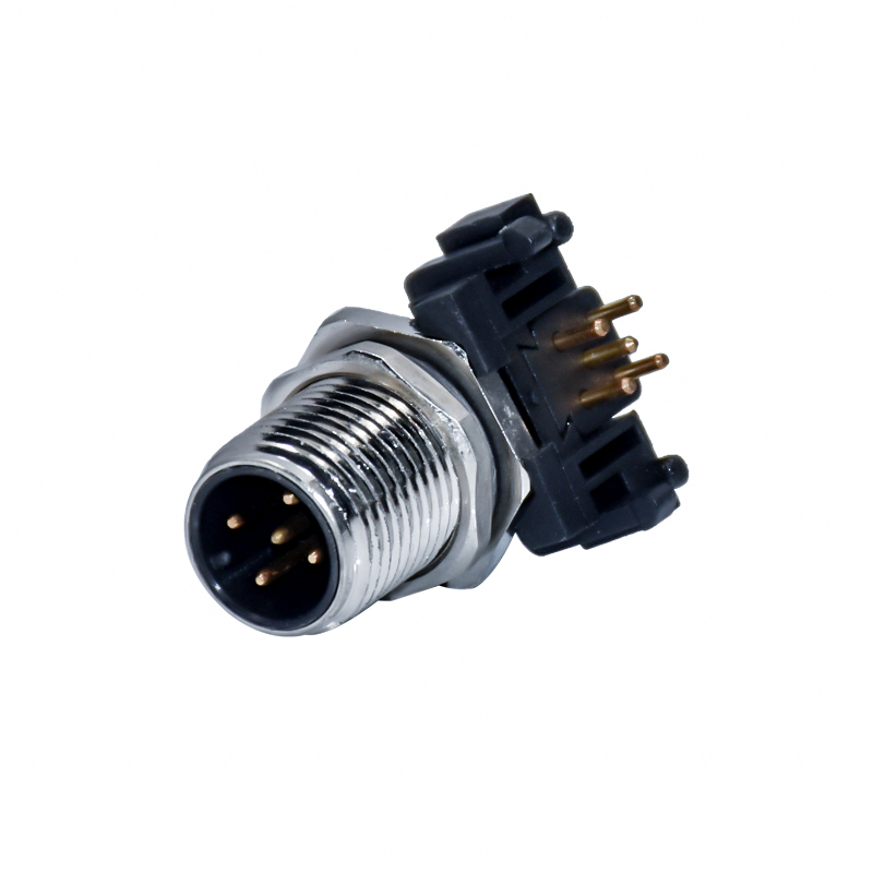 High-quality M12 Connector with 90° angle design, available in A, B, C, D, and X coding types with 3, 4, 5, 8, 12, or 17 pin configurations. Suitable for PCB sensor applications with male and female plug socket options.